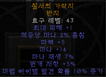 주울 + 최상급자수정 + 주얼 + 부츠 or 데몬하이드부츠 + 웜하이드부츠